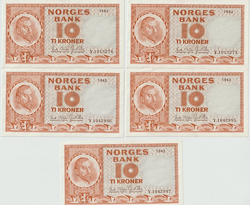 2380129: -15- Lott 5 stk. 10 kroner 1962Y, VK