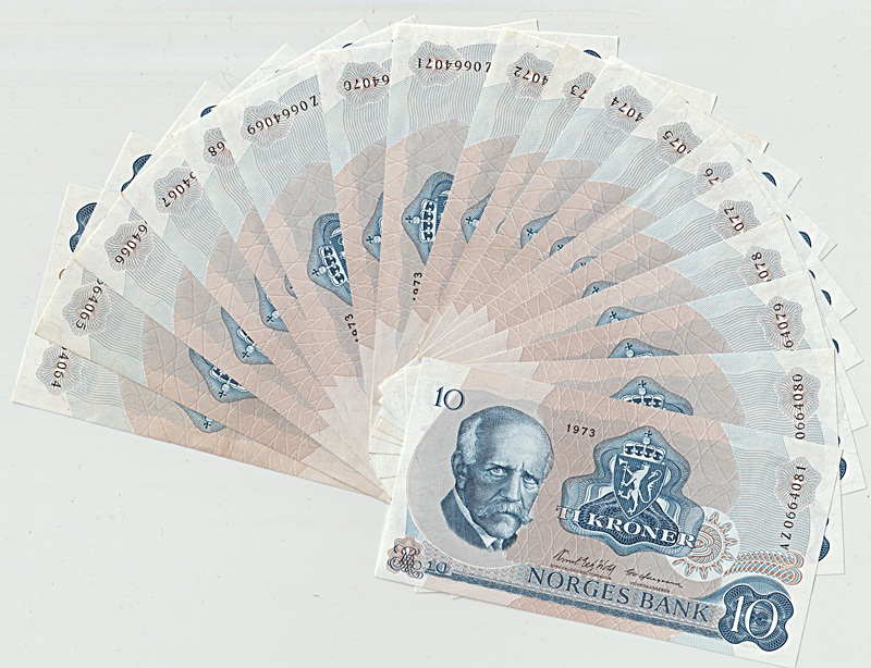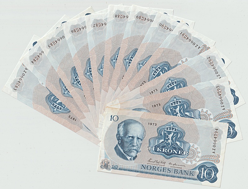 2380130: -16- Lott 30 stk. 10 kroner 1973AZ i rekkef, VK