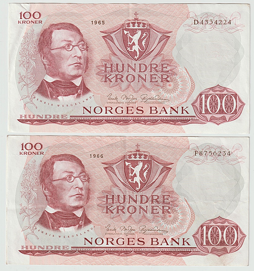 2380140: -26- Lott 100 kroner 1965D & 1966F, VK