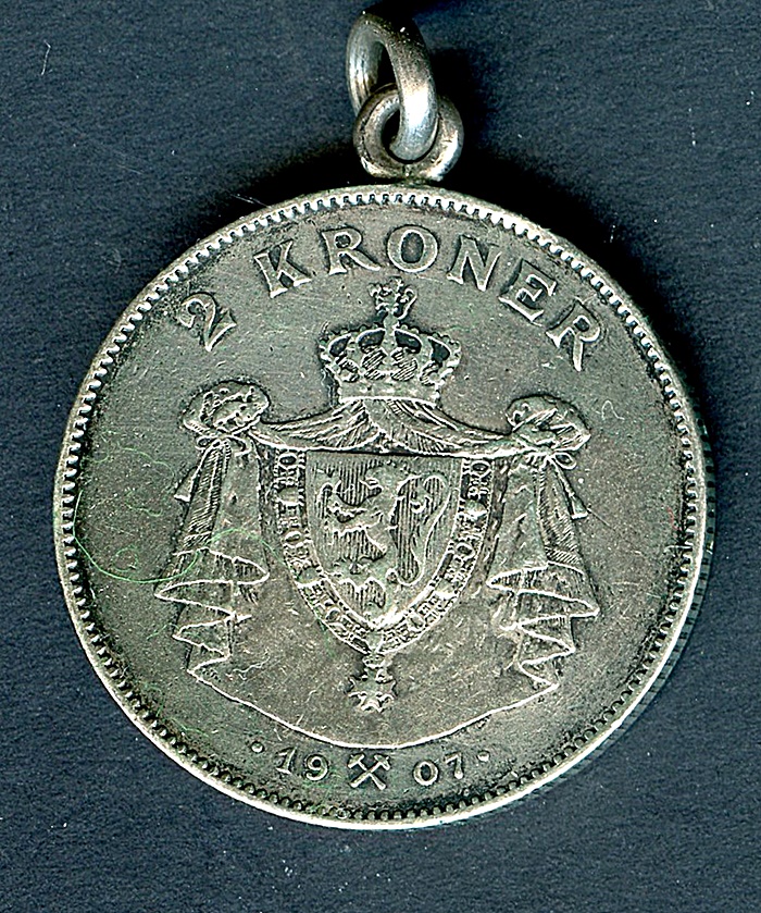 2380211: -51- Norge 2 kr 1907 gev, kv. 1, anhengt.